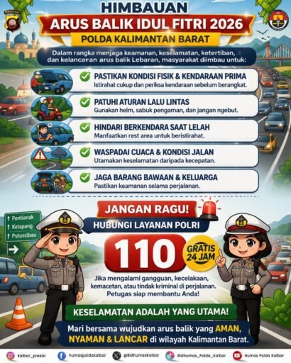 Jika ada kendala, kecelakaan, atau kemacetan parah di wilayah Kalimantan Barat, langsung tekan 110! Petugas siap membantu 24 jam gratis.