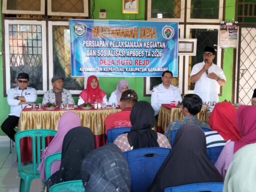 Pemerintah Desa Kuto Rejo, Kecamatan Kepahiang, menggelar Musyawarah Desa persiapan pelaksanaan kegiatan dan sosialisasi APBDes Tahun Anggaran 2026, Rabu 22 April 2026.