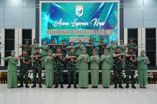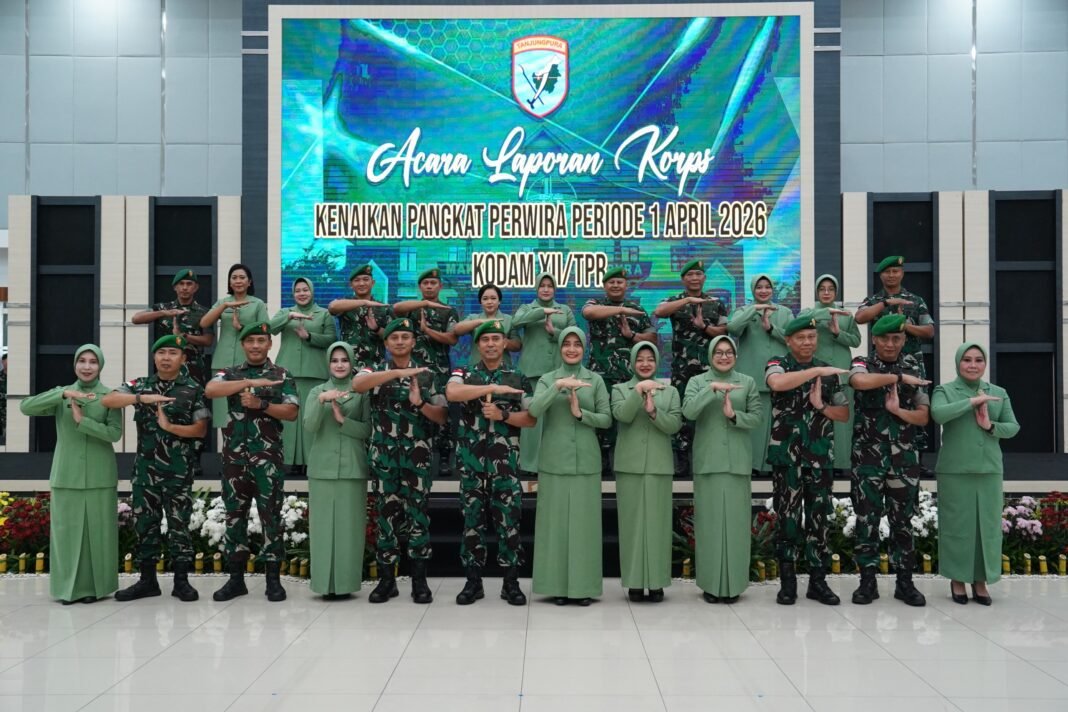 Kubu Raya – Pangdam XII/Tanjungpura, Mayjen TNI Novi Rubadi Sugito, S.I.P., M.Si., secara resmi memimpin Laporan Korps Kenaikan Pangkat Perwira jajaran Kodam XII/Tpr periode 1 April 2026. Upacara yang berlangsung khidmat tersebut digelar di Aula Sudirman, Makodam XII/Tpr, Rabu (1/4/2026).