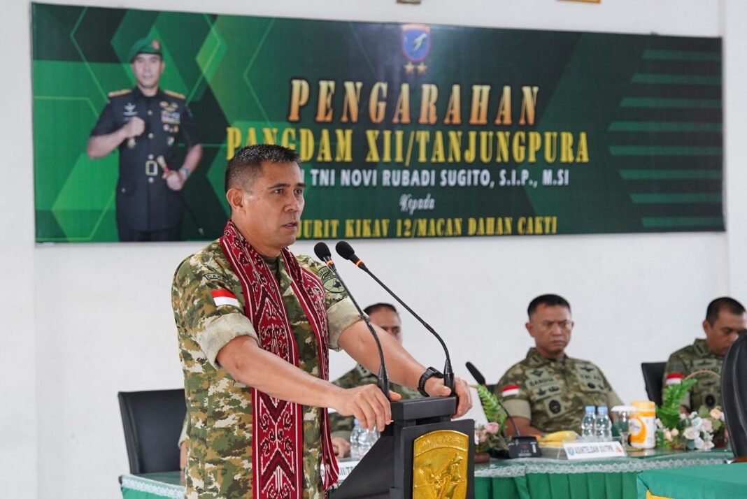 ​Kubu Raya – Panglima Kodam XII/Tanjungpura, Mayjen TNI Novi Rubadi Sugito, S.I.P., M.Si., melaksanakan kunjungan kerja (kunker) perdana ke Markas Kompi Kavaleri (Kikav) 12/Macan Dahan Cakti di Jalan Adi Sucipto, Kubu Raya, Selasa (14/4/2026).