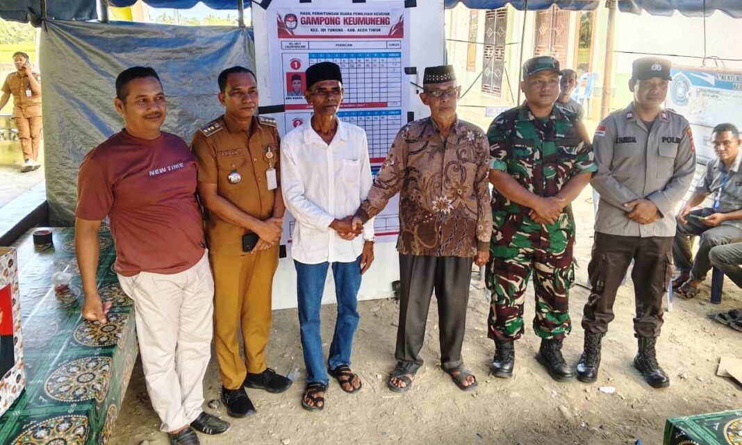 Kegiatan pemilihan tersebut turut dihadiri unsur Forum Koordinasi Pimpinan Kecamatan (Forkopimcam) Idi Tunong, di antaranya Camat Idi Tunong Adnan, perwakilan Polsek dan Koramil 17 Idi Tunong, perangkat kecamatan, tokoh masyarakat, serta warga setempat sebagai pemilih.