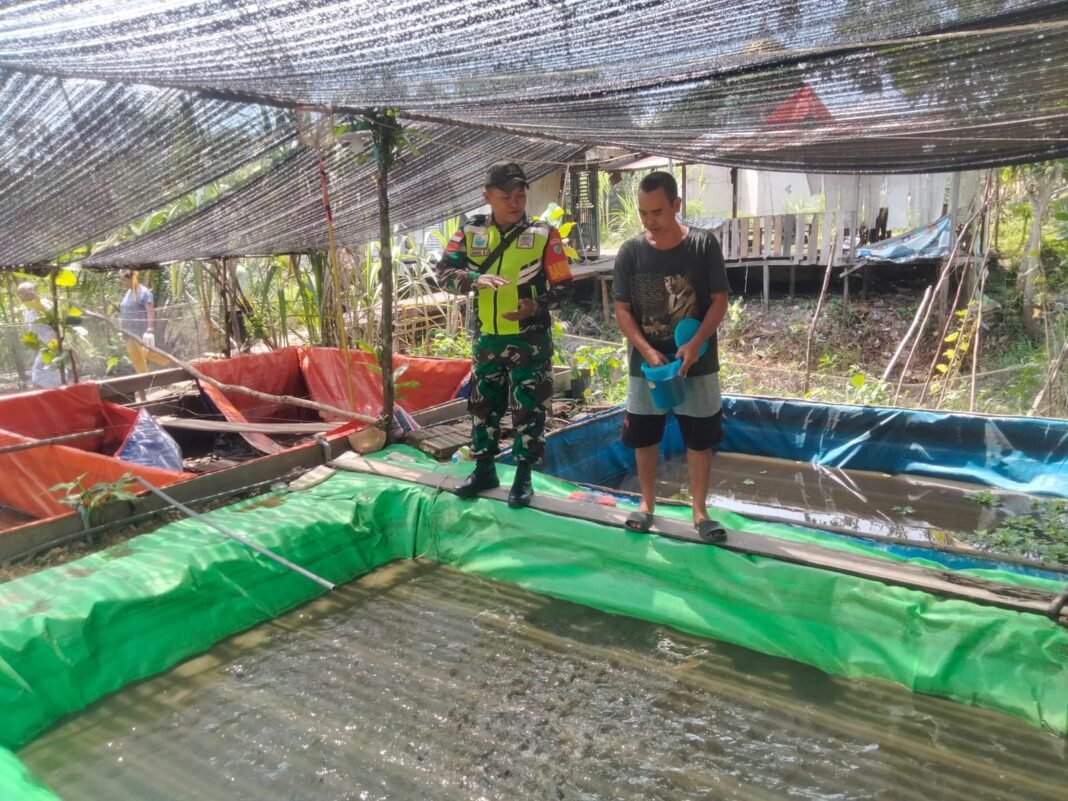 Perkuat Ketahanan Pangan, Babinsa Selakau Tua Turun Langsung Dampingi Peternak Ikan