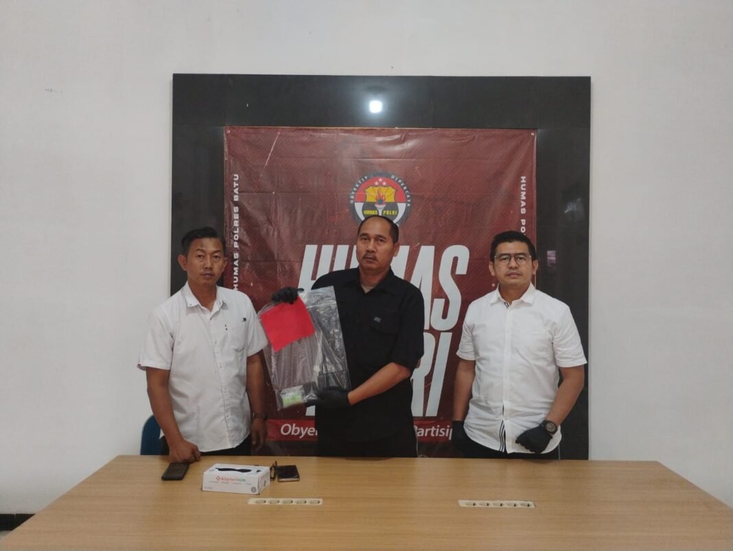 Kapolres Batu, AKBP Dr. Aries Purwanto, S.H., S.I.K., M.H melalui Kasatresnarkoba Polres Batu, Iptu Bobby Abadi Rustam, S.H., M.M menjelaskan, bahwa pihaknya berhasil mengamankan pelaku beserta barang bukti.