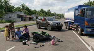 Setibanya di lokasi kejadian, pengemudi SUV tersebut mencoba mendahului sepeda motor yang dikendarai oleh Daud Zakaria Felik (33).